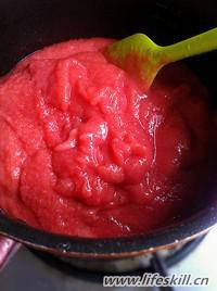 压碾果泥其间感觉粘稠不易操作,不断用煮山楂的水稀释一下再挤压