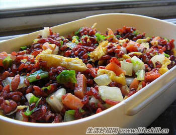 食材:米饭,玉米,豌豆,火腿,虾仁,鸡蛋