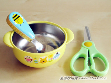 工具:食物剪刀、汤匙和碗。