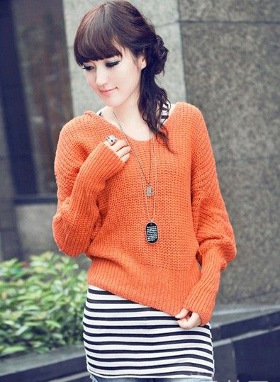 蝙蝠袖休闲个性横条五分袖针织衫,胖瘦穿上都好看也很时尚。条纹真的非常流行,每一次的出现都能给人意外的惊喜,这款是暗色调,更有简约时尚的气质,宽松的版型带点慵懒范,很有个性。搭配牛仔短裤配上丝袜,秋天这样穿非常流行。