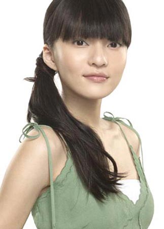 本季流行的齐刘海+斜扎马尾,清纯可人