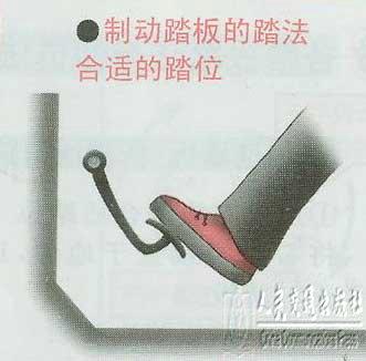 踩踏制动踏板时不能看踏板,必须是条件反射式、迅速地,这是非常重要的。应将脚置于正确位置反复练习。