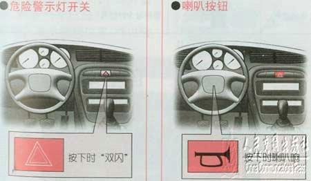 按下时前后的两侧转向灯会同时闪烁。停车时或在交通混乱时,用于警告后车。也叫做异常显示灯。
