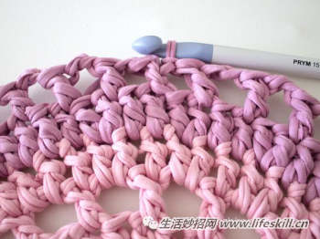 17. 每长针里钩1长针,每两个锁针里钩1长针