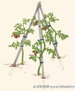 让这三条侧枝延长生长,然后均匀地盘扎在各种形状的支架上,不要绑得太紧。【如上图的番茄,盆友们养番茄这种植物记得要剪掉上图那类的芽,有利结果和生长】