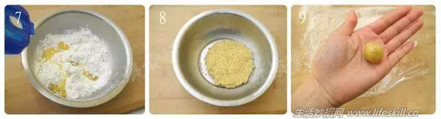 9.冷冻完的面团取出,用手揪一小块,揉成球状。