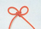 3、再拿线头如图先进套,再包套。将线拉紧即成。