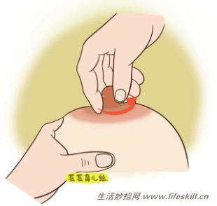 妈妈用一只手的拇指和食指呈C型托住乳房,同时缓缓振动乳房,逐渐加大振动幅度,用另一只手的食指和中指从乳晕部向乳头方向按摩。
