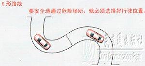 掌握适应曲线、直角弯路的车辆感觉和车体位置的选择,特别是要掌握汽车前部的视线盲区部分和汽车内轮外轮差的感觉。