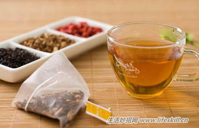 制法:将材料剪碎放入茶袋,置于保温杯内;然后先加热水冲洗茶袋,将水倒掉后,添加热水焗约20分钟。