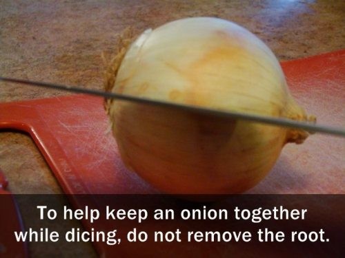 10.把洋葱的根留下来,切的时候比较不会散掉
