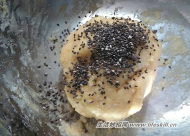 1.将地瓜去皮、切块,蒸好后压成细致地瓜泥。